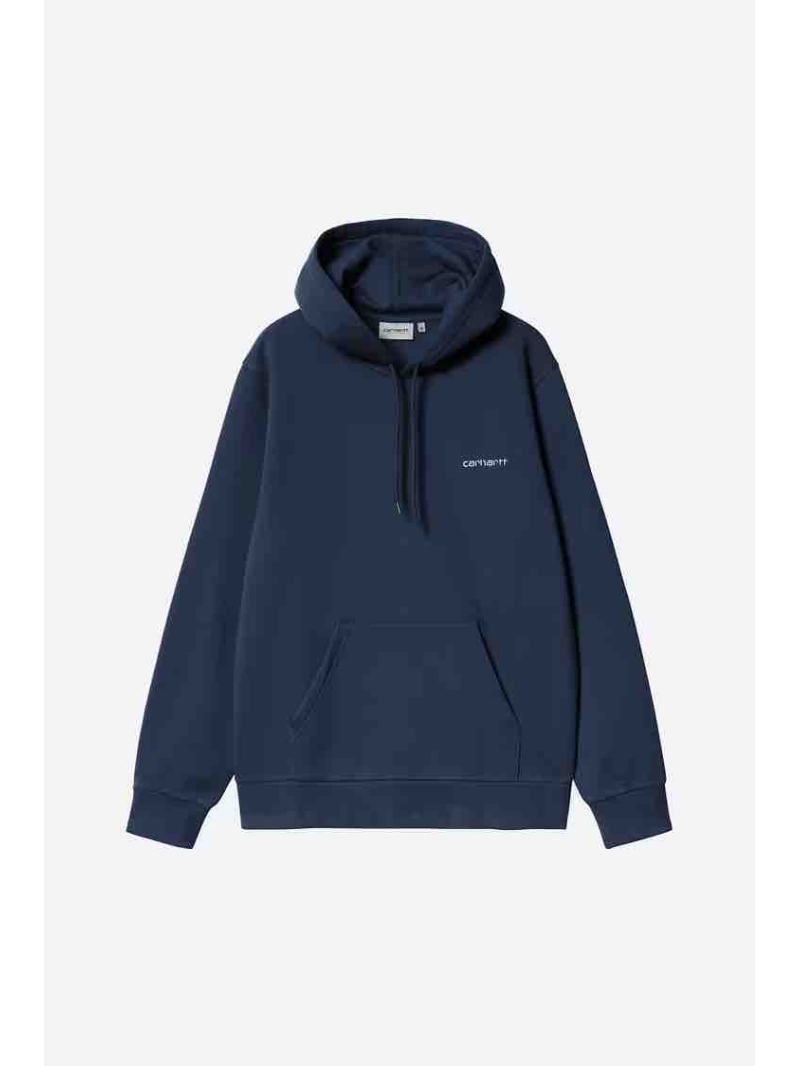 Mit seinem Regular Fit sitzt er angenehm lässig, ohne die Silhouette zu überladen. Die verstellbare Kapuze und die praktische Kängurutasche sorgen für funktionale Details. Auf der Brust befindet sich das gestickte Carhartt WIP Script Logo, das den Hoodie dezent, aber markentypisch abrundet. Durch die stückgewaschene Verarbeitung erhält der Stoff zudem eine angenehm weiche Haptik und einen leicht eingetragenen Look.